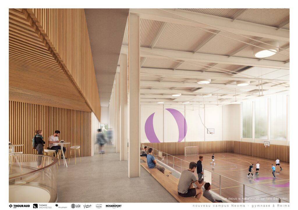 À Reims, NEOMA accueille aujourd’hui 4 200 étudiants sur les campus loués dont elle rendra l’usage à la CCI dans quelques mois pour devenir propriétaire de son nouveau campus. Déjà propriétaire à Paris, l’école le sera donc également de son site rémois, qui représente un investissement de 136 millions d’euros auxquels s’en ajoutent 9 millions pour la construction du gymnase. À proximité immédiate de ce dernier, il sera livré en même temps que le site principal au terme d’une année de travaux qui débutent prochainement. « Nous avons estimé important d’être en pleine maîtrise du bâti et des locaux, précise Delphine Manceau. Cela nous permet d’être autonomes, agiles, et nous garanti d’avoir la flexibilité pour répondre aux besoins en évolution constante de nos publics. »